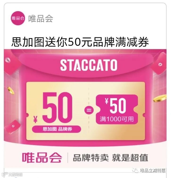 导读:STACCATO思加图送你1000-50元优惠券(10月13日)——券被领完,可联系后台