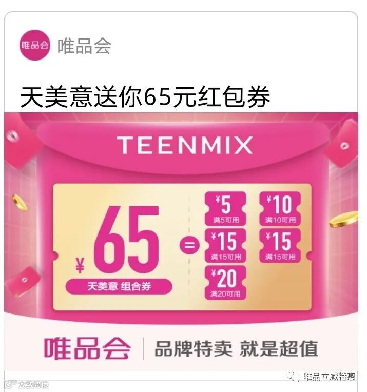 导读:TEENMIX天意美65元组合优惠券(9月6日)——券被领完,可联系后台