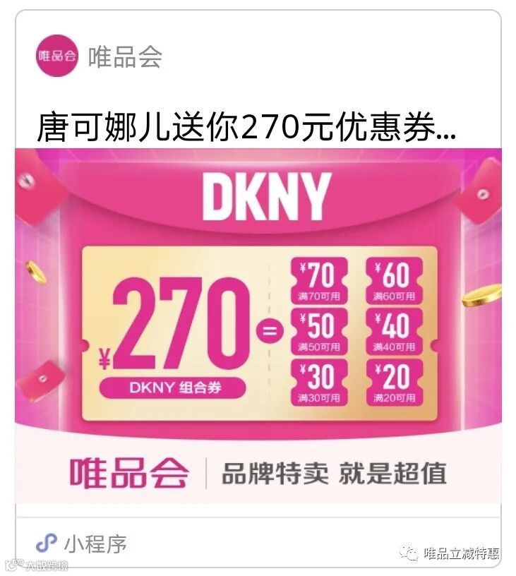 DKNY送你270元组合优惠券(8月17日)——券被领完,可联系后台 唯品立减特惠