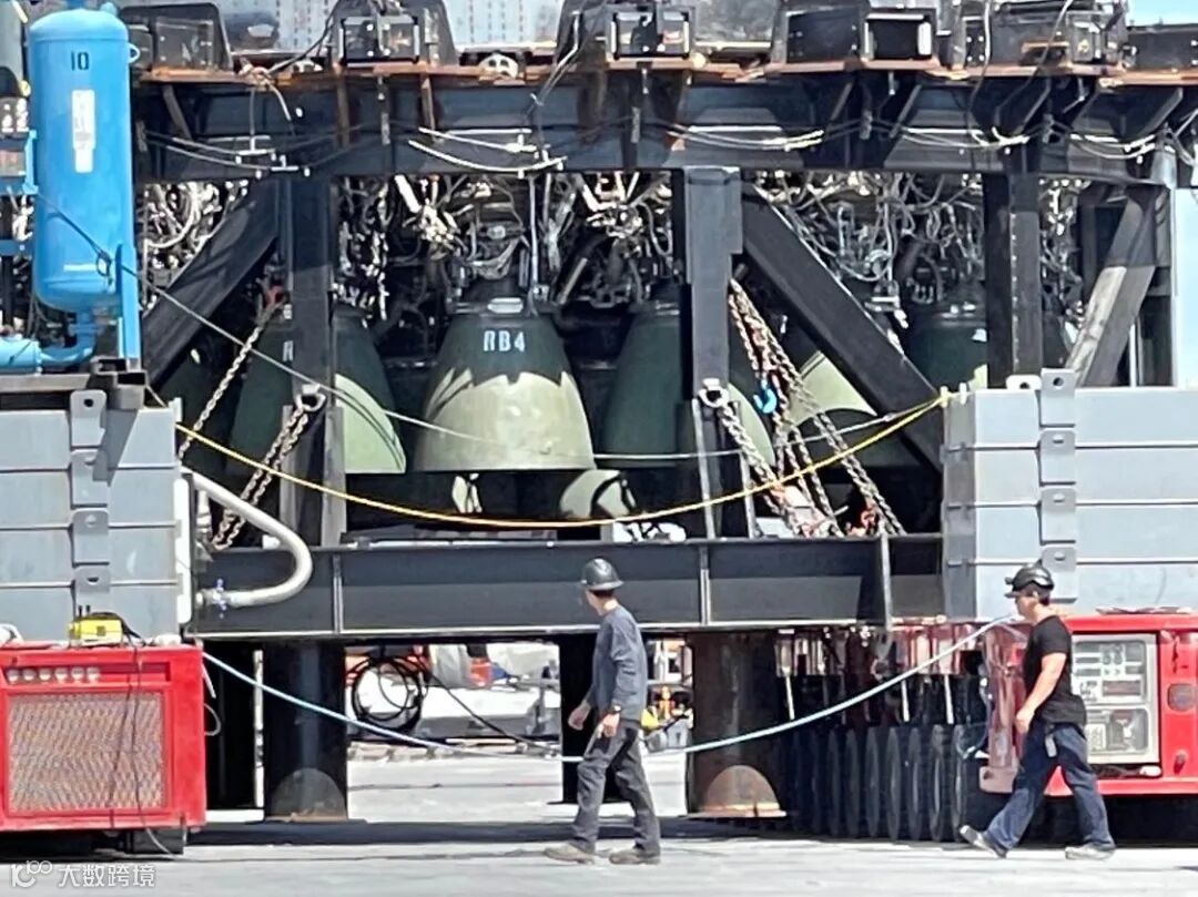 超级重型助推器配备了29个燃烧甲烷的猛禽(Raptor)发动机,这将使它成为世界上最强大的火箭。SpaceX公司开始在组装工厂的高隔间里移除星际飞船和超级重型的猛禽引擎。据一直在拍摄该公司进展的当地居民称,截至当地