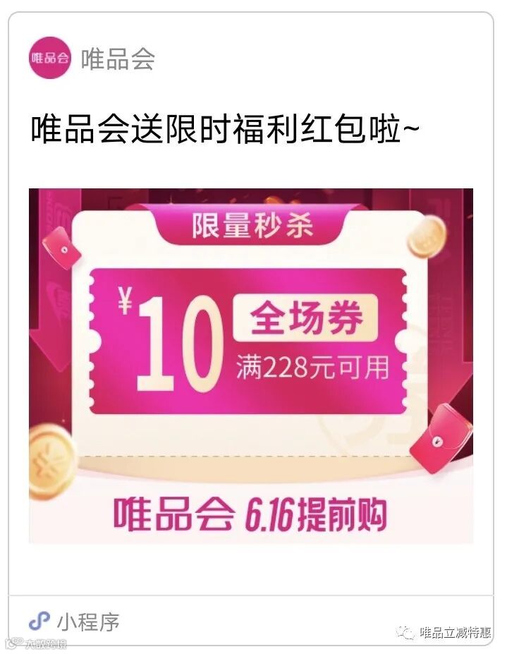 导读:唯品会满228-10全场券(5月24日)——券被领完,可联系后台