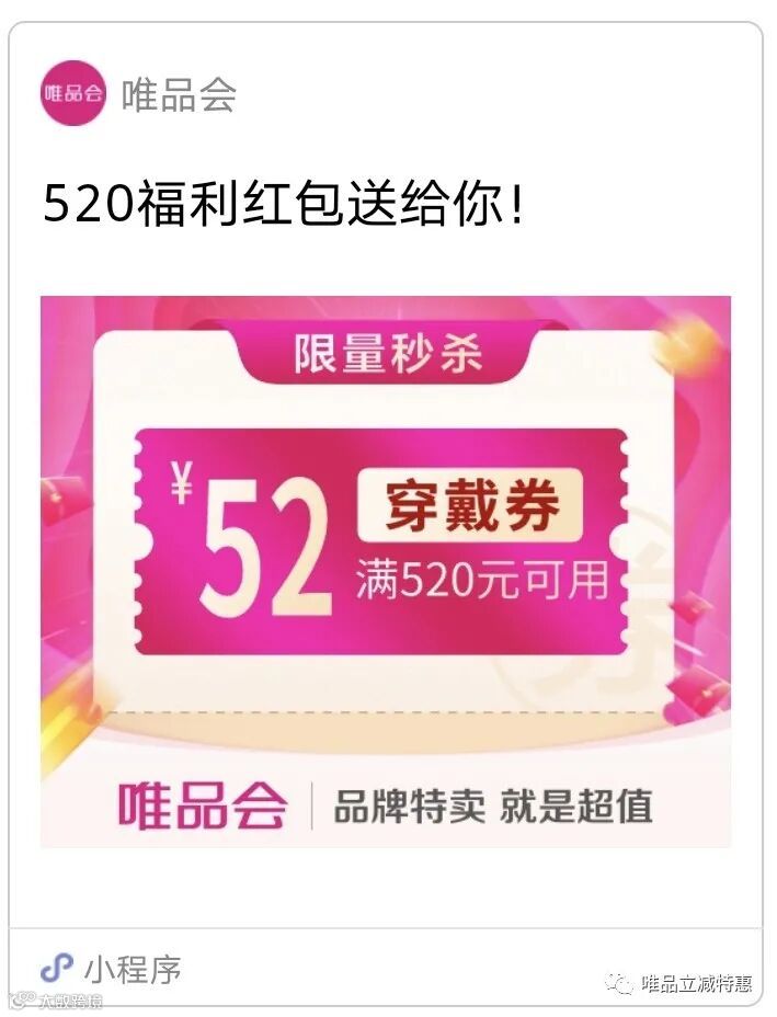 导读:唯品会满520-52穿戴券(5月20日)——券被领完,可联系后台