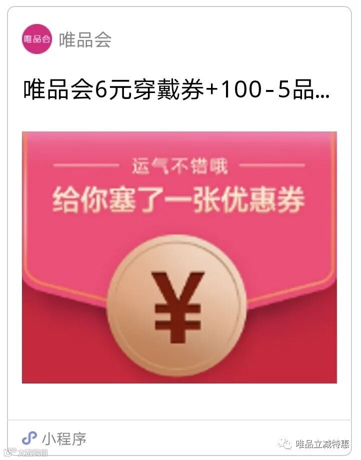 唯品会优惠券——送你一张满6-6穿戴券+满5-5品类券。