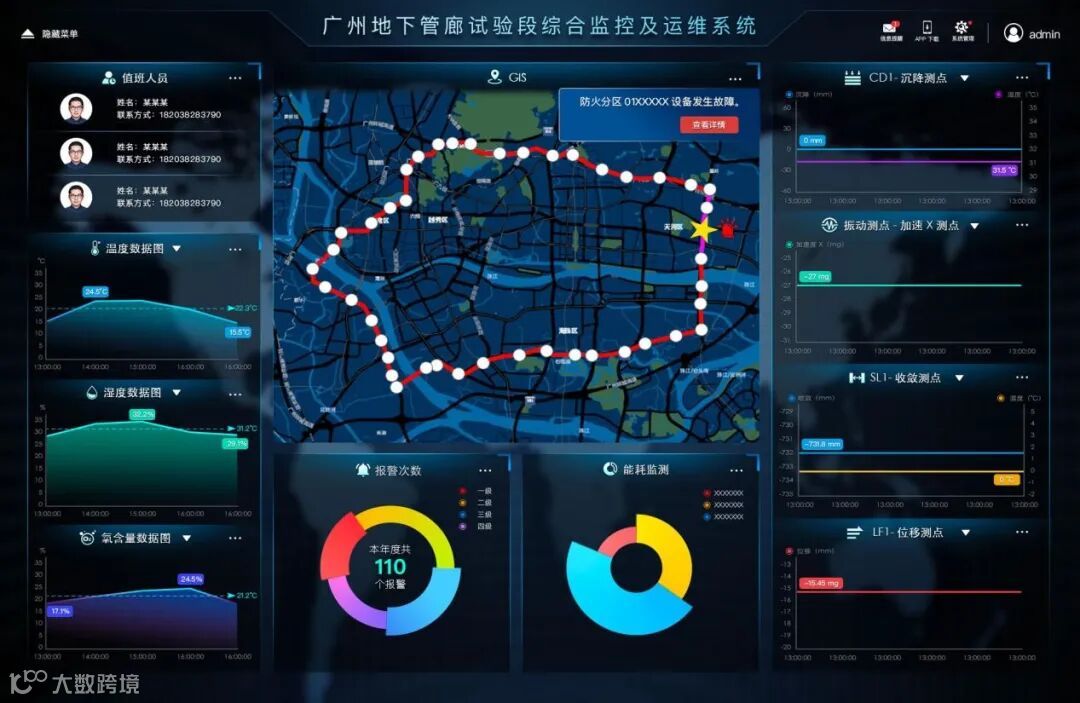 安全监测管理:利用传感器收集的数据,对管廊的结构安全、设备运行状态等进行实时监测,一旦出现异常情况,如温度过高、湿度异常、设备故障等,系统会自动报警,提醒工作人员及时处理