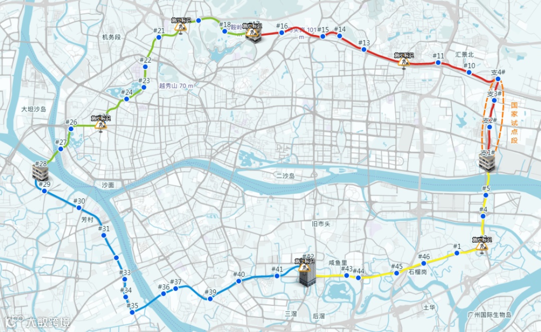 广州市中心城区地下综合管廊,全长45.7公里,是国内规模最大、最长的地下综合管廊。它呈环形穿越广州中心五区,串联近30座变电站、三大自来水厂、多个通信枢纽,并与其他管廊互联互通,形成广州管廊骨架系统。实现全市供电、供水、通信的综合平衡和远程调度,大幅提升市中心的安全保障和应急能力。