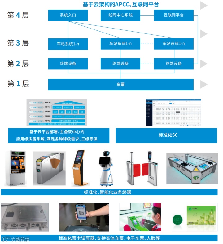 基于云架构的AFC自动售检票系统分为四层:云系统、车站、终端、车票。利用智能感知、生物识别、深度计算、人工智能等科技手段,基于多维支付方式构建一个立体的自动售检票系统。通过前端车站终端设备将数据直接传送至清分清算系统,在中心后台进行大数据融合,综合分析,同时整个系统支持第三方平台的数据接入。