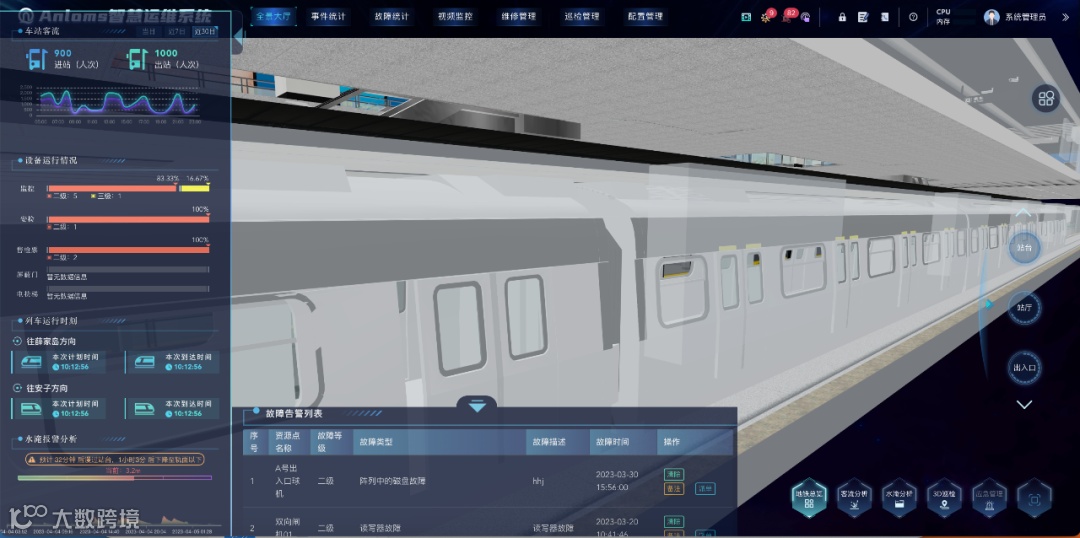 智慧运维系统以BIM、视频分析、无线定位等技术为手段,将设备状态与报警等控制类数据、智能视频数据、运营管理、客运服务、乘客服务等管理类数据深度融合,通过大数据分析,结合车站 BIM 三维模型通过数据可视化技术向中心调度、车站运营、客运服务、乘客服务、设备维保等各级工班人员提供符合其岗位特点和要求的、简洁高效的可视化管家式车站运营场景,提供更加全面、智能的管家式一体化应用功能,提高车站运营、客服和设备维保的效率,从而提升线路的安全性和高效性。