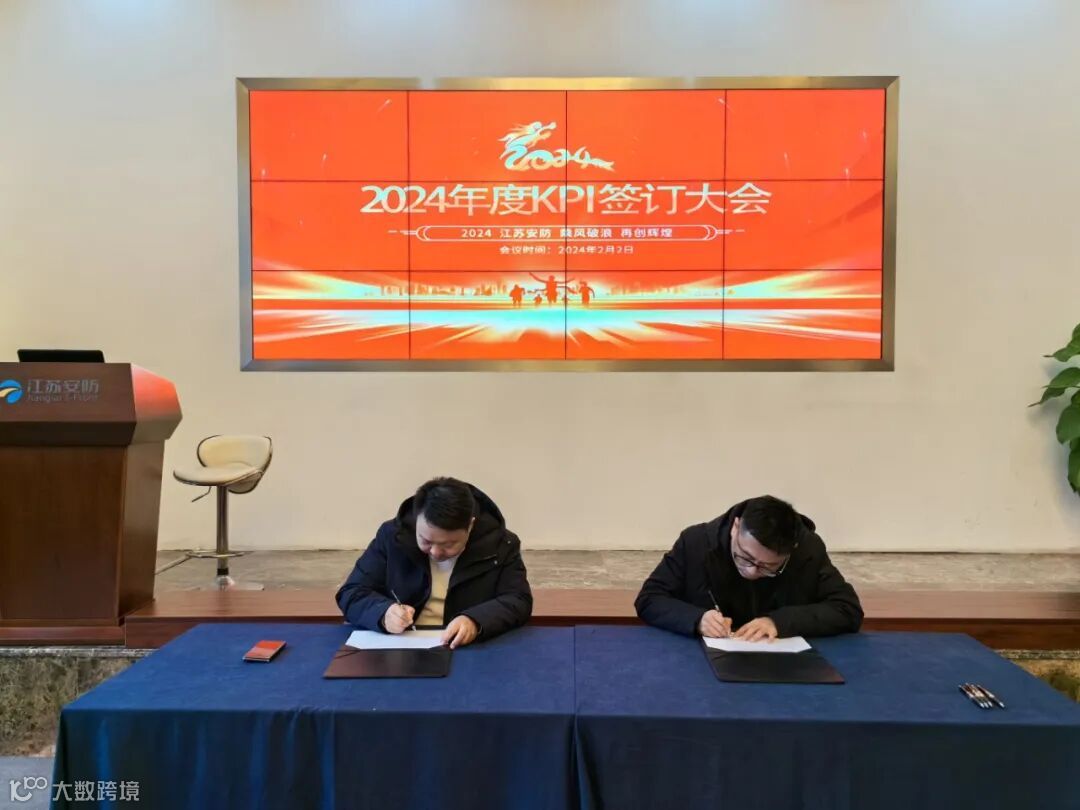 江苏安防2023年度交付总结大会·2024年度KPI签订大会在总部大楼报告厅隆重举行,江苏安防总裁金善朝、执行总裁程悦、副总裁刘积坤、汪梅芳、地下空间交付部部门经理杨国栋、金美电子交付部经理孙操、交付部各项目经理及部分中层管理干部参加会议。