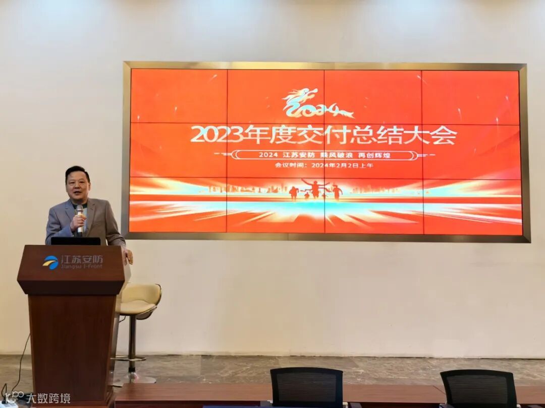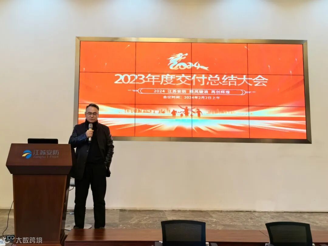 随后,副总裁刘积坤对两个部门2023年工作作指导发言。刘总表示:2023年的点滴,有危机、有挑战、有突破,这都是江苏安防交付人成长的见证。征程漫漫亦灿灿,笃定前行亦驱驱。希望大家继续并肩奋斗,坚定踏实走好未来每一步,共同实现江苏安防宏伟事业。