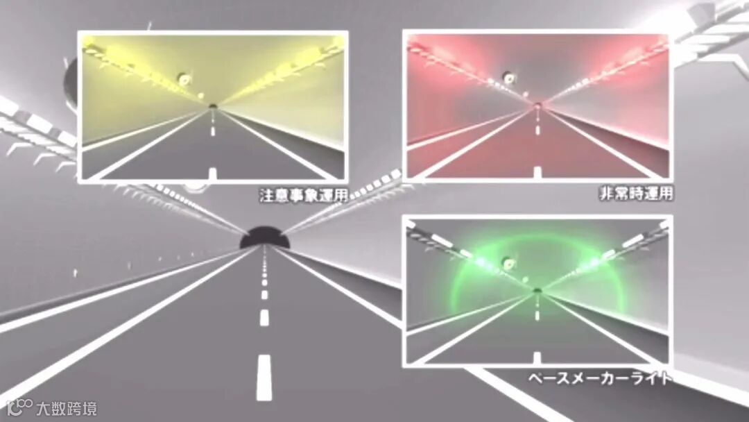 如上面视频所示,他们在隧道内使用了绿黄红三色led灯光。