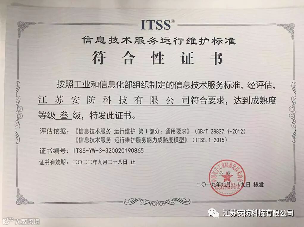 日前,我公司顺利通过ITSS运行维护服务能力成熟度符合性第三方评审,获得运行维护服务能力成熟度三级认证。ITSS信息技术服务标准是由国家信息技术服务标准工作组组织研究制定的一套成体系和综合配套的信息技术服务标准库,全面规范了IT服务产品及其组成要素,用于指导实施标准化和可信赖的服务。