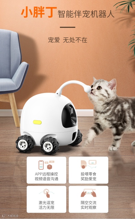 采用1080P高分辨率,110°超广角摄像头,加持夜视功能,集中整合式设计,内置式隔层零食盒,避免出现卡槽的情况,头顶的移动式逗宠棒可以让猫咪们尽情的互动,避免猫咪独自在家不活动而引起的肥胖症,活跃日常生活。远程操控,高清摄像、零食投喂、互动陪玩四大功能一体化,体验感区别于其他产品,可玩性高,可以给宠物不间断的陪伴,让宠物的余生不再是无尽的等待。