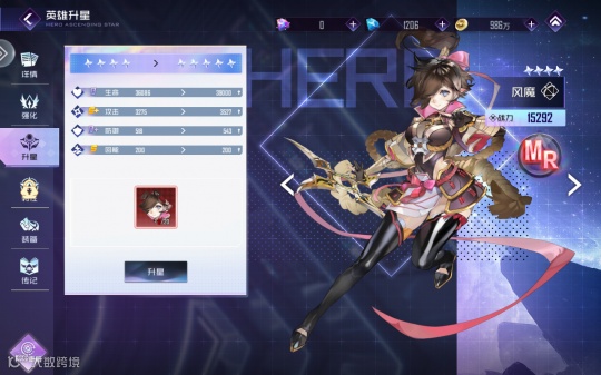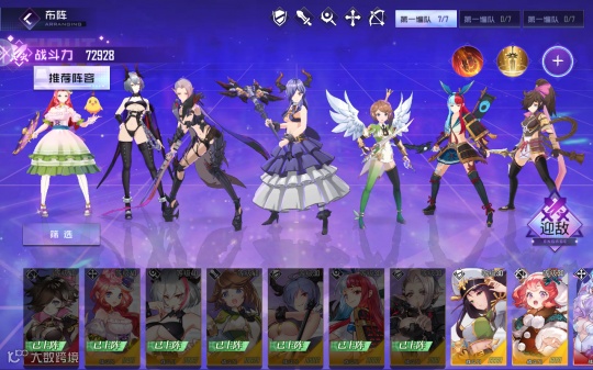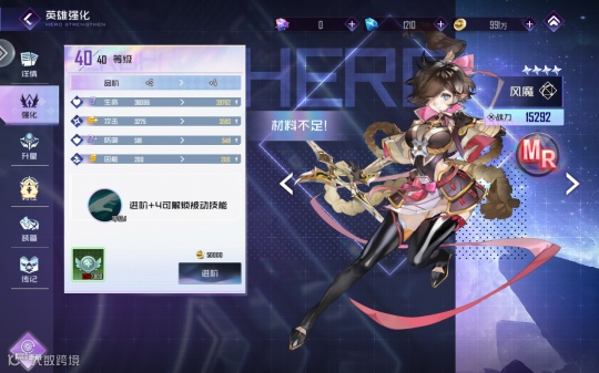 在养成上也是比较简单易懂,角色提升主要集中在角色等级与装备上。提升角色等级除了消费金币外,还需要纹章。金币的获取途径多,前期基本消费不完,但是纹章就不一样了,纹章在前期养成中消费量巨大,晋升所需的材料数量呈直线上涨,所以在获取角色时玩家必须要先想清楚要用哪7个角色开荒,根据自己抽到的角色提前安排,不然就陷入主力等级跟不上玩家等级的尴尬状况。