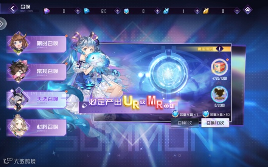 另外还有限时池子、氪金的天选池(只出MR与UR)、和材料池子。天选池的材料欧皇水晶不一定要氪金去买,也可以在商店中用素材兑换,但要花上不少时间才能买到一颗,最直接的方式还是氪。普池、限定池与材料池的价格都一样,换算过来是20块10抽,10连必出UR;而天选池则是150块10抽,也就是跟大部分手游差不多,差距就在没有保底。运气成分的东西不太好说,只能说玩家自行体会了。