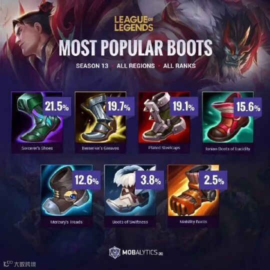 S13赛季数据统计:法穿鞋最受欢迎