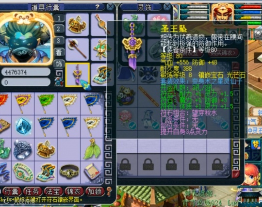 项链部分为100级总灵225的红萼仙子,这种高宝石、高灵力的任务装备具有极强的保值属性,流通性非常强。