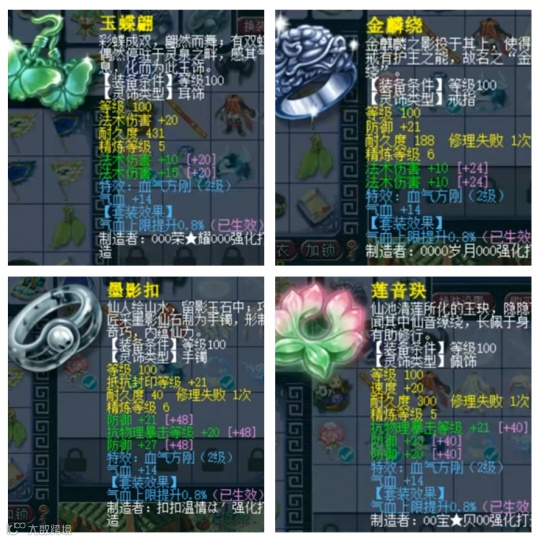 鞋子部分为100级流云、星灵仙子,镶嵌了10级黑宝石,算是目前保值属性拉满的套装装备。