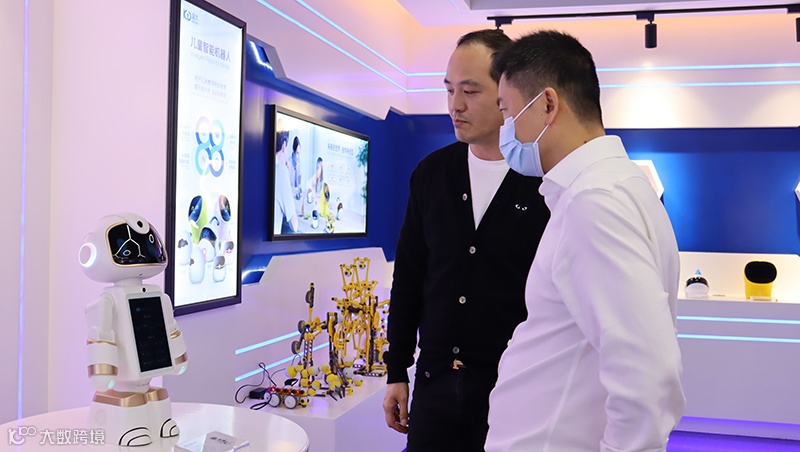 随后,一行人来到公司的二楼展厅,王总也详细介绍了目前全渠道营销的产品,包括编程机器人,AR眼镜,地质机器人,及其他代表性产品,不仅了解了其功能,也询问了我司2020年产品的市场情况及销售情况;