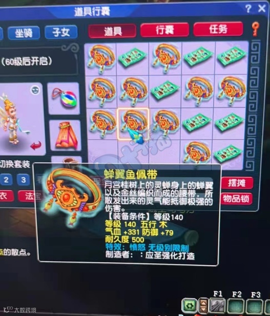高端腰带部位只要有愤怒+无级别这两个蓝字,就是人人仰望的盖世神器,非实力者不可拥有!有位玩家在7月份就炸出了这么一条逆天双蓝字腰带,它的等级是140级,初防79、气血331,如此优秀的属性,X9大佬看到估计要馋哭了!