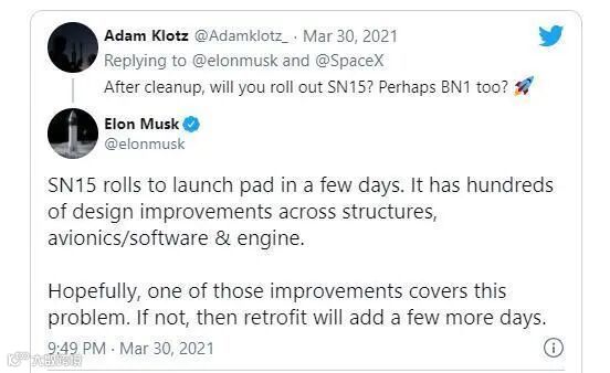 马斯克表示,SN15“在结构、航电/软件和发动机方面有数百项设计改进”,希望包括升级,以涵盖迄今为止阻止SpaceX在没有计划外快速解体的情况下坚持着陆的一些问题。SpaceX在过去一周对SN15进行了一些初步测试,马斯克上周