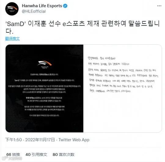 万幸SamD被调查后,LCK官方确认其中并没有涉及金钱交易,所以他才没有得到更严重的处罚。希望这件事的发生,能让更多选手们引以为戒吧。