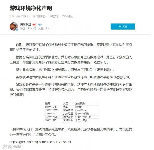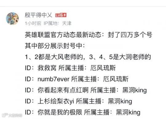 但他们的反应如何其实并不重要,真正重要的是官方怎么看待这件事。昨晚九点,英雄联盟官方就对多位使用脚本的主播进行了封号三年的处罚,黑洞king、厄风琉斯的游戏账号都在此列。