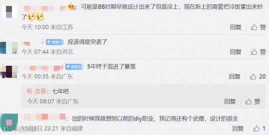 对此不少玩家也一度表示震惊:“冰封王座版本的未能实现的预言,今天得到验证了”,“可能是BB时期早就设计出来了但是没上,现在新上的高管把冷饭拿出来炒了”,“WC时空穿越者”,“LZ是不是去暴雪干了”……