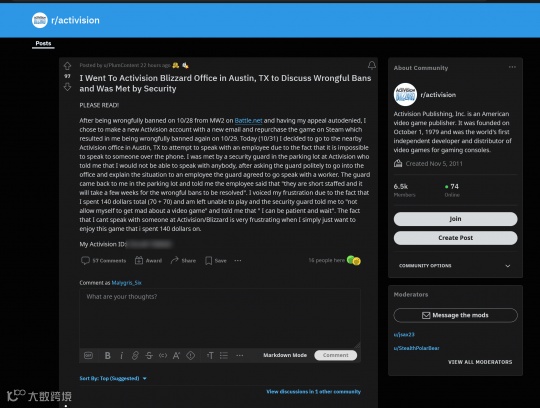 但也不是所有玩家对于游戏现状都能感到满意,动视员工在享受作品所带来的声望和收益的同时,也得承受来自部分玩家的不满。近期,德州奥斯汀的动视办公室就迎来了一个不速之客,一名玩家表示要跟开发游戏的工作人员“理论”一下。