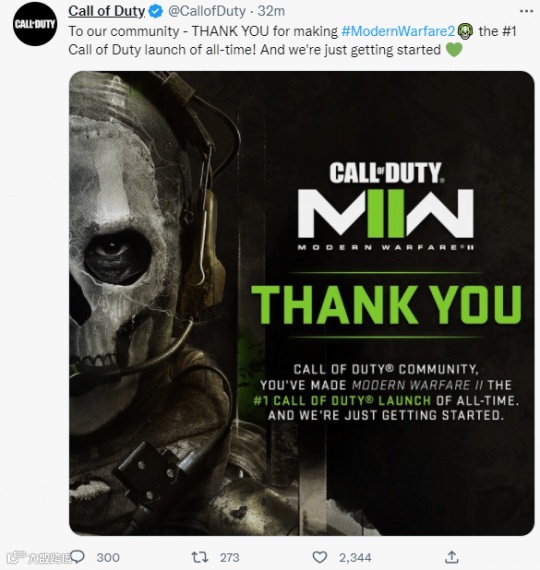 已于10月28日正式解禁的《使命召唤19:现代战争2》,正在朝着“系列最佳”的名号发起冲击。来自全球的玩家追捧,使得这款游戏在发售3天内,销售额就达到了8亿美元。为此动视还专门发了动态,感谢粉丝和玩家们的支持。