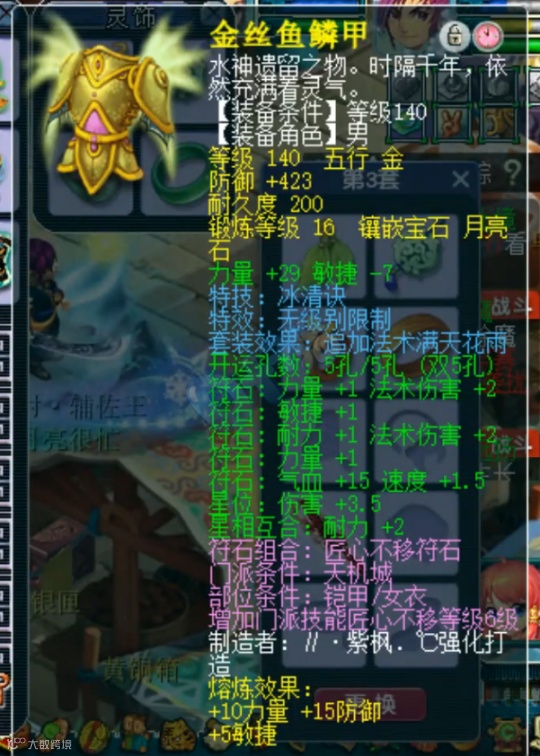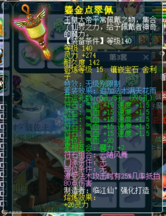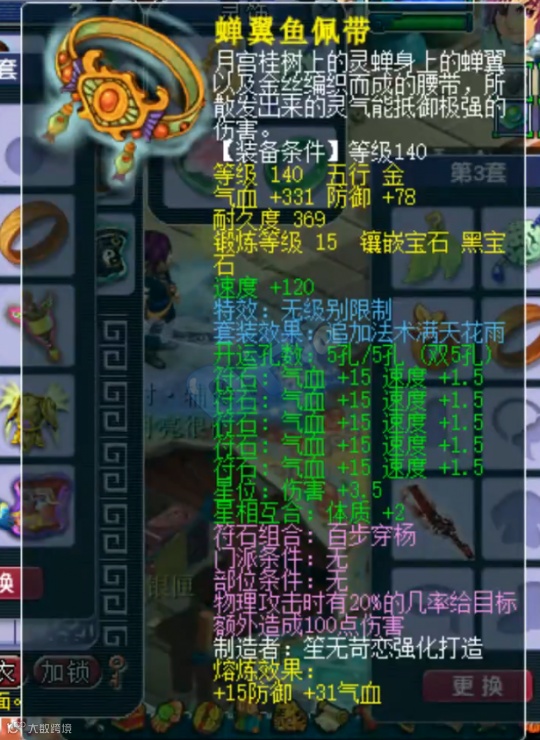 佩饰上排速度16爆2、下排防御18爆2,气血71、62各爆17、8