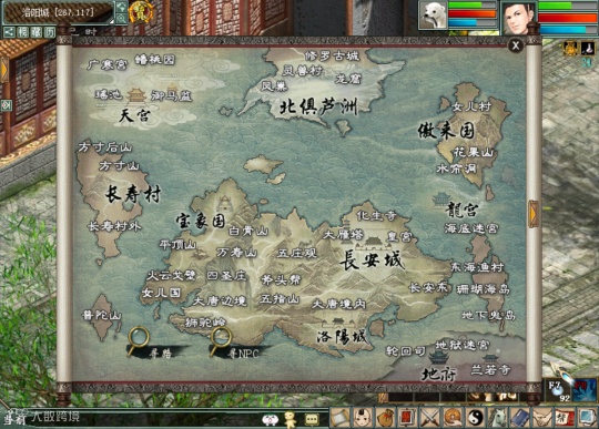 新世界地图,应该是重做了。旧版的看起来有点很挤的感觉,毕竟大话世界还会继续增加新地点吧?还是新地图方便以后增加些什么东西,看起来也简明。
