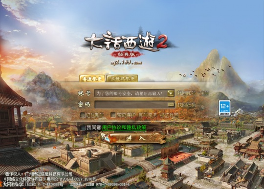 两个登录界面和之前的登录窗口,风格好像又互换了。刚才是旧版浑浊,新版明亮;现在是新版浑浊,旧版明亮。登录界面,我喜欢旧版的风格,字体也是亮金,看着大气厚重,尤其“大话西游2”的logo,非常明显;背景的长安城凸显出一种浑厚的感觉;新版的更像是乌云密布下的长安,是预示着“黎明前的黑暗”吗?