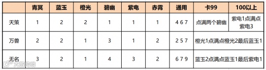 天策/万兽/无名星穹,天策输出全靠紫电,什么都可以没有必须满紫电,有势如破竹必选碧幽2,万兽的橙光无名的蓝玉才是重点。