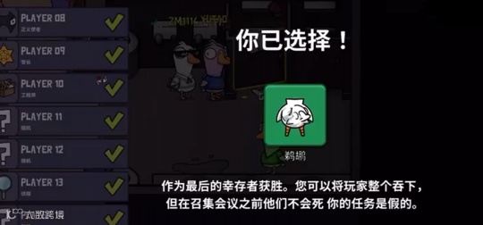 《鹅鸭杀》不仅有多变的地图池,游戏设定也非常丰富。鹅是平民,鸭是杀手,除此之外还有众多像呆呆鸟一样的身份,每个身份想要取胜的条件都不一样,这也实现了“每个人都可以成为主角”的梦想,不至于呆头呆脑跟在别人后边混,体验不到乐趣。