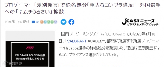 更加具体的情况是,Hayappe在对局中,跟一位来自中国台湾的职业选手Keynes发生了口角。但不知道出于何种原因,Keynes被Hayappe误认为是韩国人。Hayappe后续用“泡菜”这样的蔑称来称呼Keynes,这才引起了接下来的严重后果。
