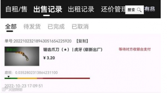 在发现情况不妙后,卖家急匆匆联系了客服,想要把白菜价抛出去的饰品给追回来。可由于已经发货(卖家直到发货时还以为是在租借),所以没有办法找回这把“锯齿爪刀 虎牙”了。