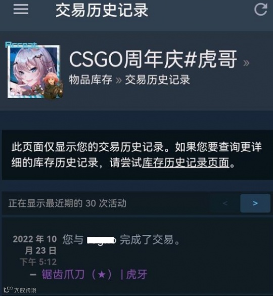 起初连他自己都不敢相信这个价格是真实的,来回确认了几次,但结果都一样。这把“锯齿爪刀 虎牙”的确是买断入手并非出租,有交易记录可查。而如此一来,通过这些数据也能够证明他确实是经过正规渠道,花了3.2元买到了这件饰品。