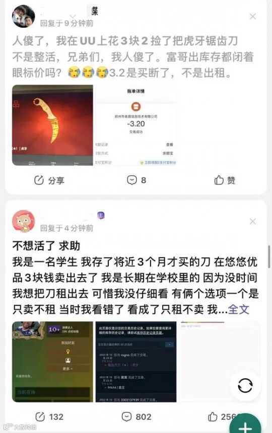 一位自称是学生党的CSGO吧吧友,发布了帖子吐槽起自己的“脑溢血”操作。据他所说,自己存了三个月的钱买的刀,由于平时用得少,所以想租出去回点血。