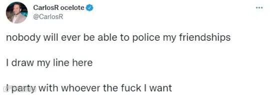 这不是Carlos第一次承受外界舆论压力了,随即他便表明了“我想和谁玩就和谁玩”的态度。奈何Carlos虽然天不怕地不怕,G2的董事会却顶不住了。(毕竟要考虑这件事,对整个G2战队所带来的影响)