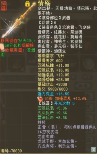 6阶镶有两颗10级宝石的睡武器