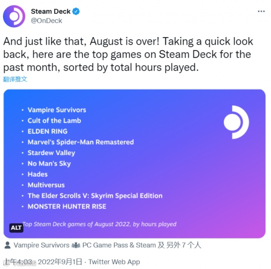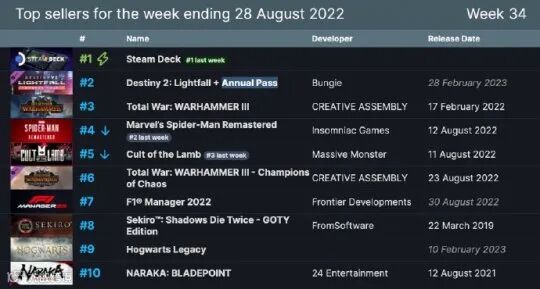 Steam周销榜向来都是铁打的营盘、流水的游戏,然而近三个月以来,居于榜首的作品却从未改变过。即使主机独占游戏《漫威蜘蛛侠》推出了PC版本,也依然无法撼动它的地位。而这款销量出众的作品,正是V社自家开发的Steam Deck掌机。