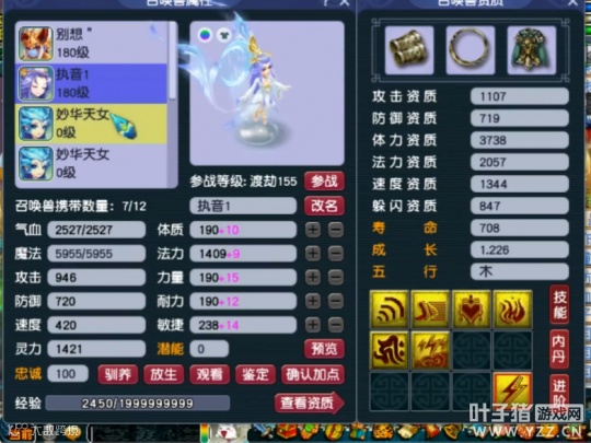 第四只召唤兽为11技能高连林中鸟雷龙,这只召唤兽的技能非常给力,除了要补资质以外找不到别的缺点。