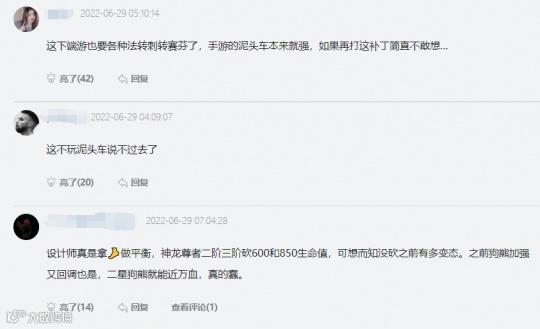 对于此次削弱,大部分网友都表示无法接受:“飞机你削弱个XX,神龙烈焰都吃不到鸡”,“星界转确实不合理,但问题是星界龙的质量更不合理,一张能打的都没有,龙王也基本是个铁废物,启动太慢,带个法转和科技枪才勉强能用”,“设计师真是拿脚做平衡,神龙尊者二阶三阶砍600和850生命值”……