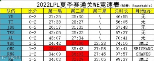 而今WE已经成为了全LPL的速通对象,位于榜首的V5战队用了46分55秒就打完了BO3。