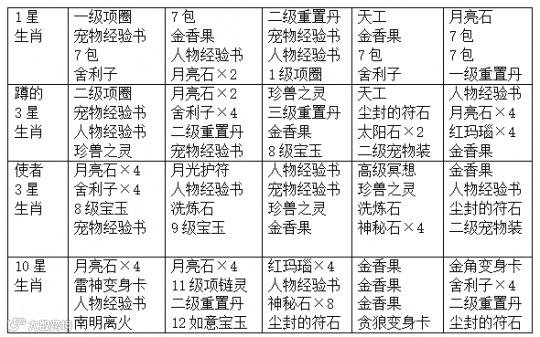(4)6星以下的生肖得到的宝石奖励一般为2个,而6星以上的生肖得到的宝石奖励一般是4个。