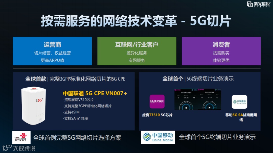 另一方面,展锐还在不断探索真正改善用户体验的技术,联合运营商全球首发5G终端切片选择技术。