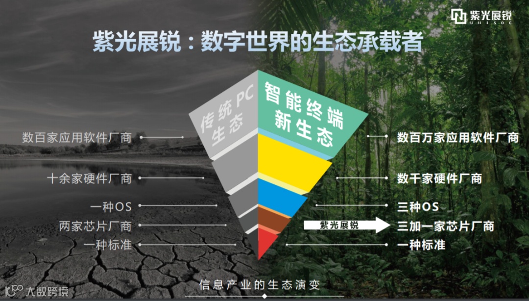 而新一代的生态是以智能终端为代表的新生态,它拥有丰富的生态资源,包含数百万家的应用软件厂商、数千家的硬件厂商。展锐在这里承担了生态承载者的责任。