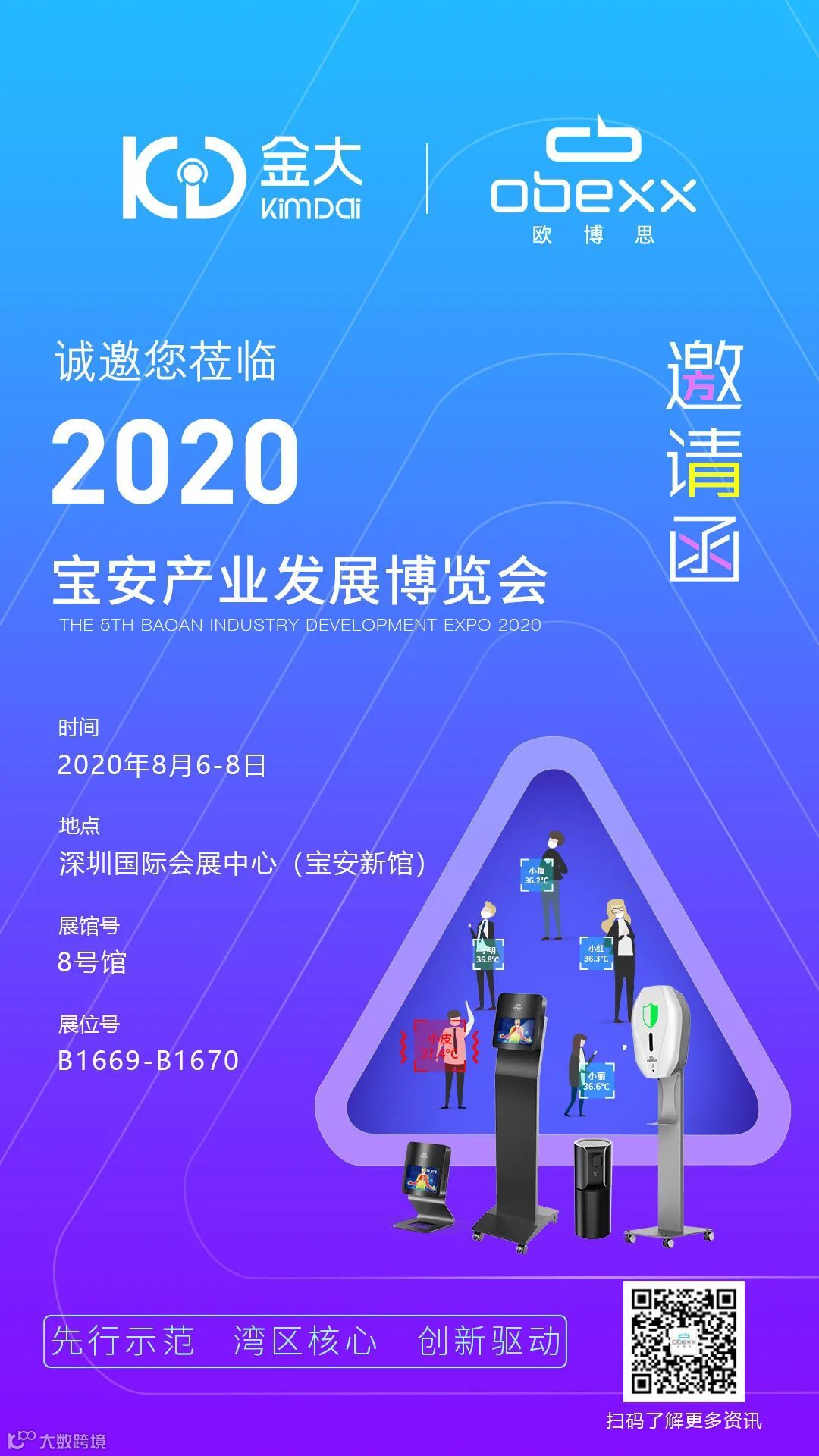 金大·欧博思将参加2020宝安产业发展博览会,我们荣幸地邀请您于2020年8月6-8日期间,莅临金大·欧博思位于深圳国际会展中心(宝安新馆)8号馆B1669-B1670展位参观、洽谈。我们期待与您相见。