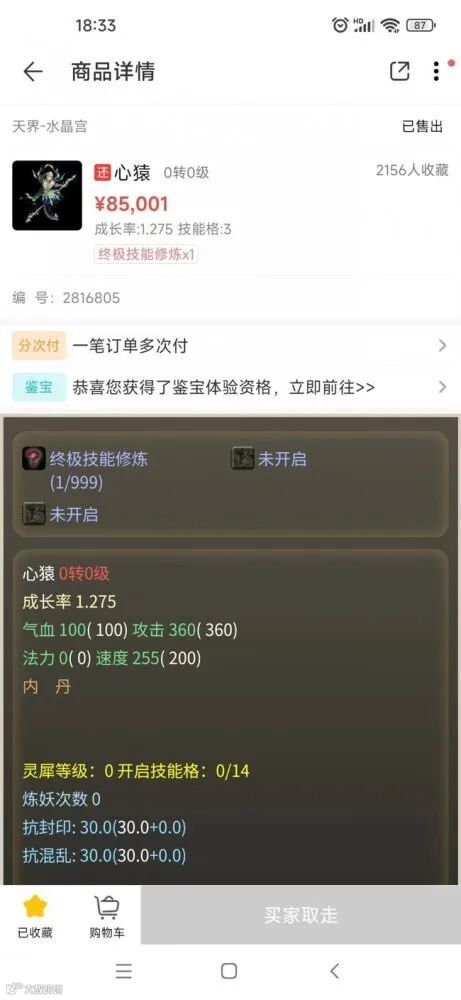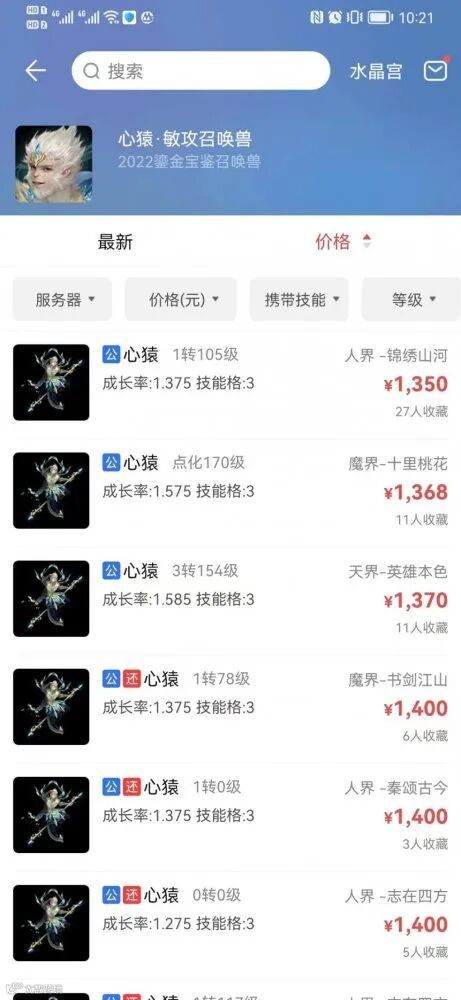 而一直在关注心猿消息的小编,也立即就开始查看藏宝阁里心猿的价格: