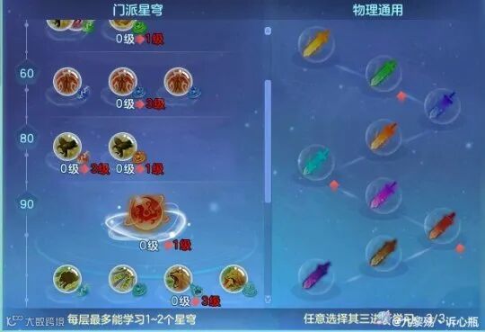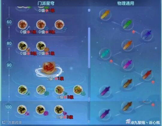 飞升130的褐金实战作用并不高,前面还没学满的话先点一级就可以了,蓝玉、橙光、紫电三层都点了两个星穹,目的是提高万兽的上限,因为这些伤害都是可以叠加的。而且不管是哪个星穹,触发概率都是第一级加得多,越后面加得越少,从概率论的角度这样的点法,也能增加星穹触发的总次数。
